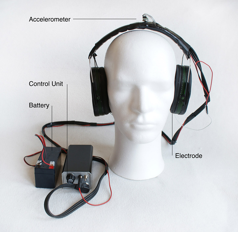 Als onderzoek naar de effecten en mogelijke toepassingen van vestibulaire stimulatie heb ik dit object gemaakt om experimenten te doen. Middels electroden tegen de mastoïde botten achter de oren wordt er stroom door het evenwichtsorgaan gestuurd. De richting en intensiteit van deze stroom zorgt bepaald de richting en intensiteit van de beïnvloeding van het evenwicht. In het kort, door een stroom van links naar rechts wordt de proefpersoon letterlijk naar links ‘geduwd’ tijdens het lopen door het eigen evenwichtsorgaan. Door dit te koppelen aan de eigen lichaamsoriëntatie middels een accelerometer zijn er experimenten gedaan om te onderzoeken of ons eigen evenwicht verbeterd kan worden onder bepaalde condities.
