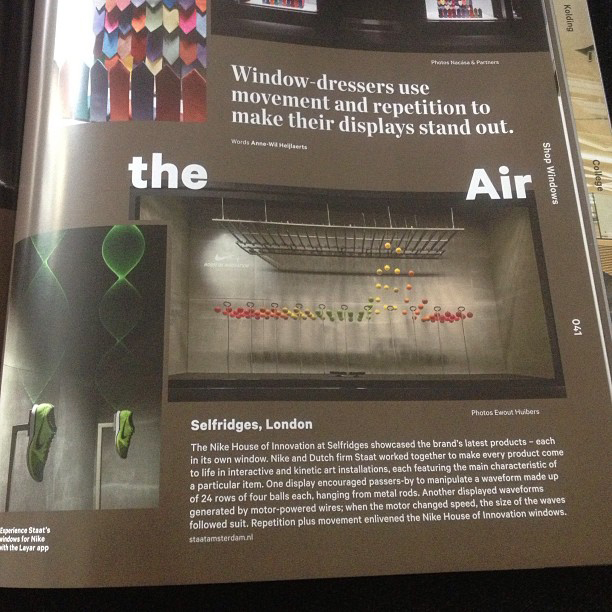 In samenwerking met Random Studio en Staat Creative Agency ontwikkelde Creative in Motion deze interactieve etalage voor Nike in warenhuis Selfridges in Londen tijdens de Olympische spelen 2012. Doordat de etalage reageerde op voorbijgangers was de aandacht groot en liepen mensen vaak terug om nog eens goed te kijken. Vele blogs, online en offline magazines hebben over deze etalage geschreven. Ook won de reeks etalages waar deze installatie deel van uitmaakte een prestigieuze ADCN award.